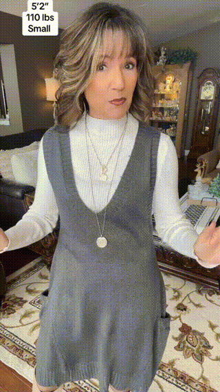 This gorgeous Sweater Vest Dress is a must-have addition to your wardrobe. The loose style can well cover the crotch, abdomen and buttocks, especially suitable for pear-shaped body. Great for fall and winter wear, you can match it with a long-sleeved shirt on the inside and a jacket on the outside, warm and stylish, when spring is coming, just match a long sleeve shirt for a trendy look.